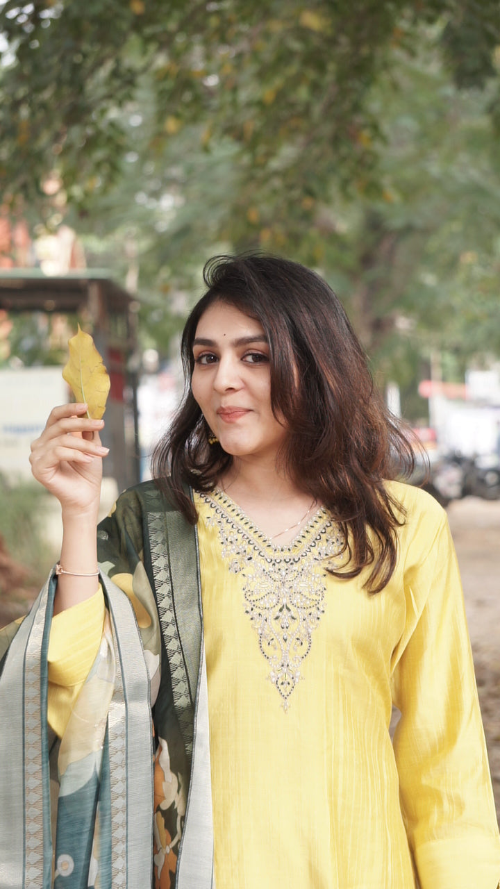 This Rainbow Silk Slub 3-Piece Ethnic Salwar Suit in Yellow and Green is a vibrant and stunning ensemble, designed to make a statement while embracing the beauty of traditional craftsmanship. The rich, textured silk slub fabric adds depth and sophistication to the outfit, creating an elegant, timeless look that's perfect for festive events, weddings, or special celebrations.