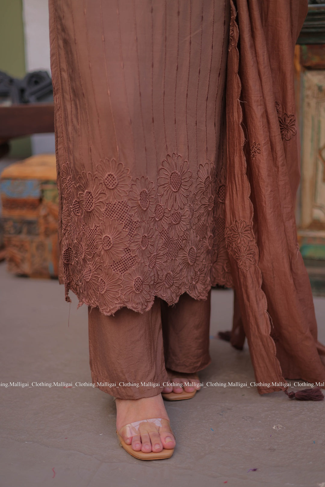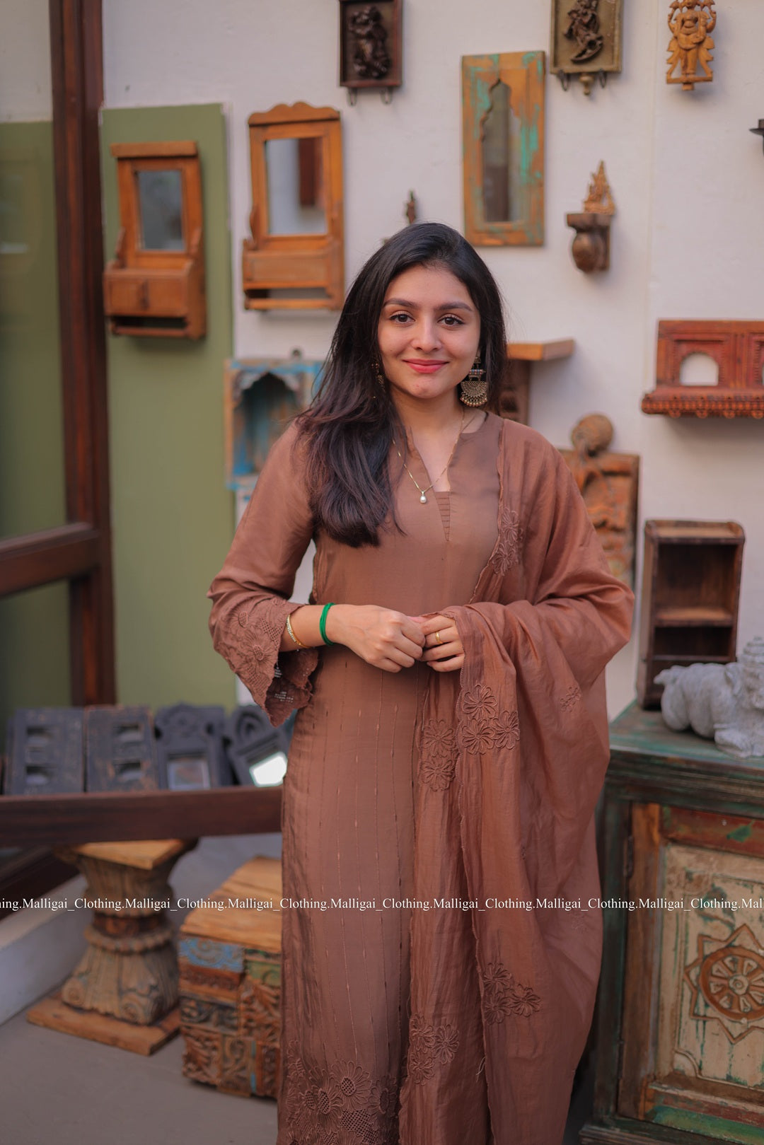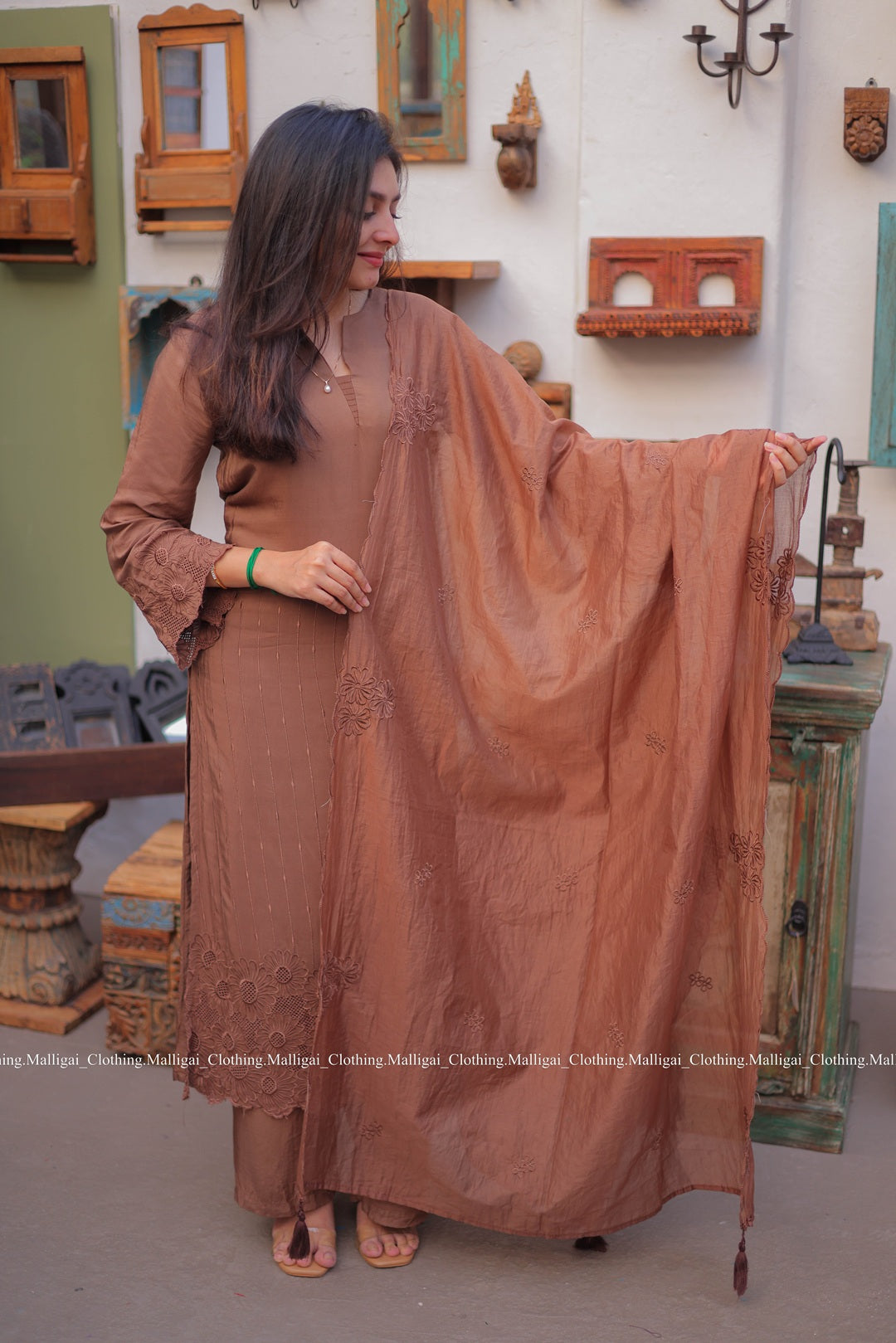 Chocolate Brown Silk - 3 Piece Salwar Suit