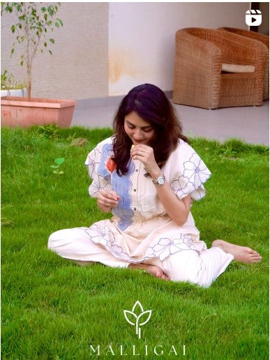 The bottoms are equally refined, with a relaxed yet polished fit that complements the top perfectly. Designed for comfort and style, the trousers or skirt (depending on the style) offer effortless movement, making this set suitable for a range of occasions, from dinner dates to special events.